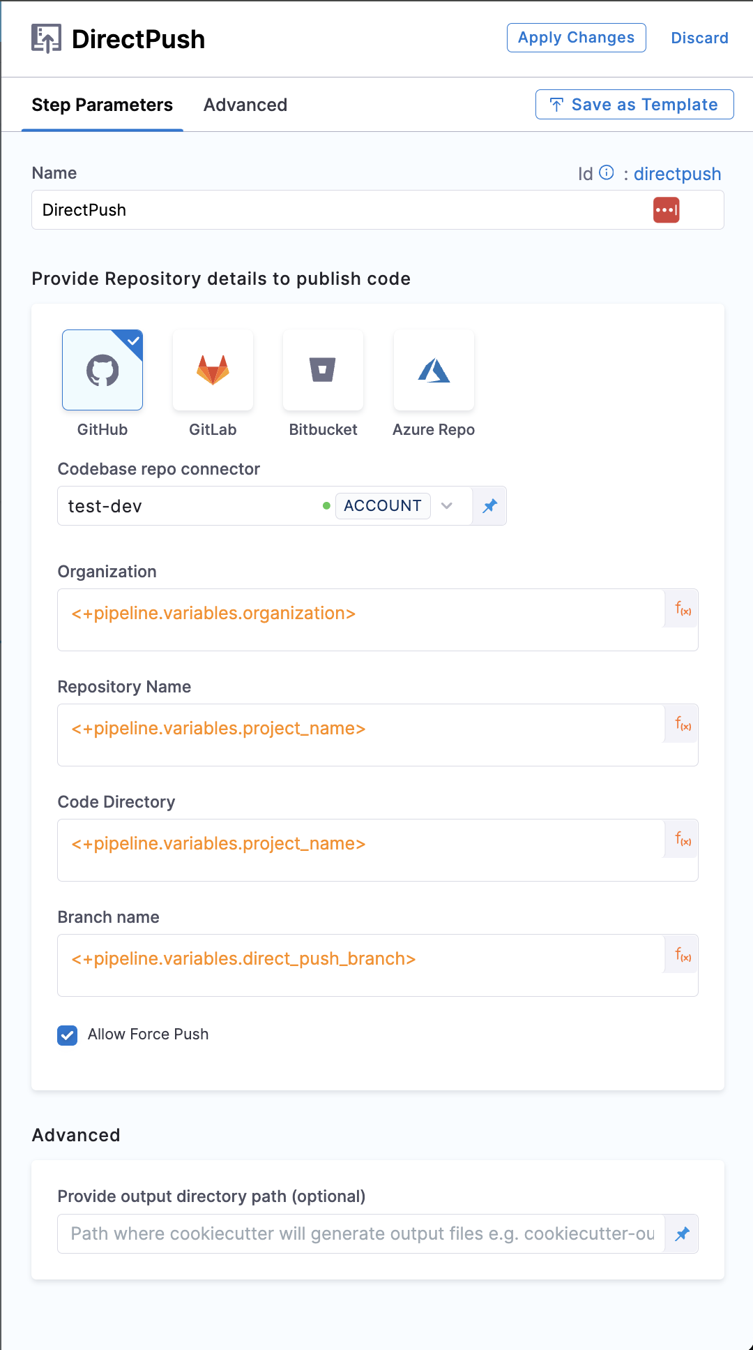 : Used to create the repository in your git providerdirectPush