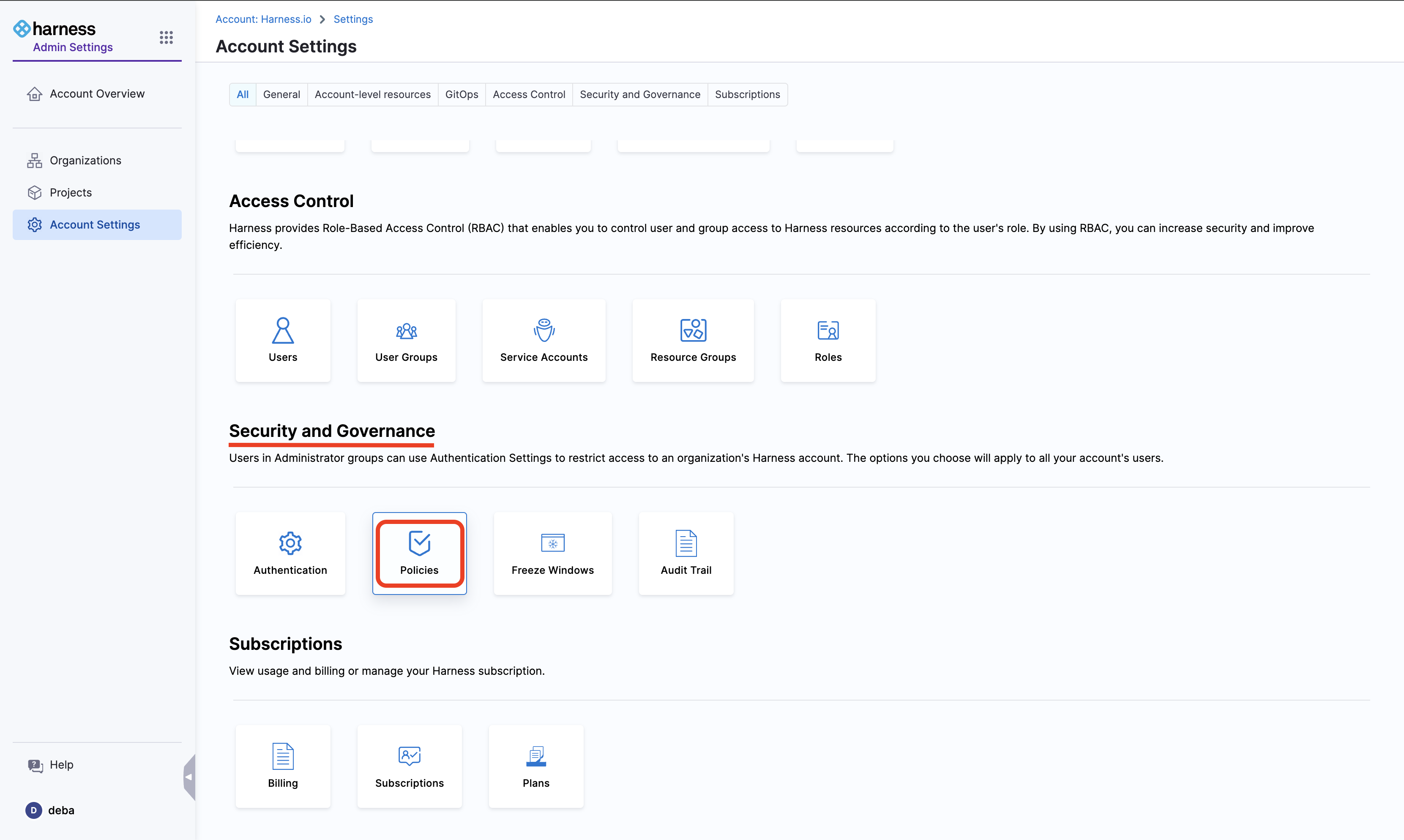 Select Policies under Security and Governance.