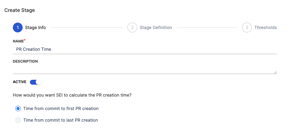 - Select the PR Creation Time stage