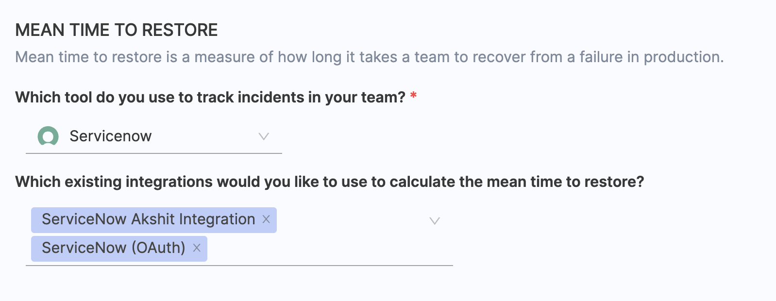 - Choose ServiceNow as the tool that you use to measure change failure rate in your team.